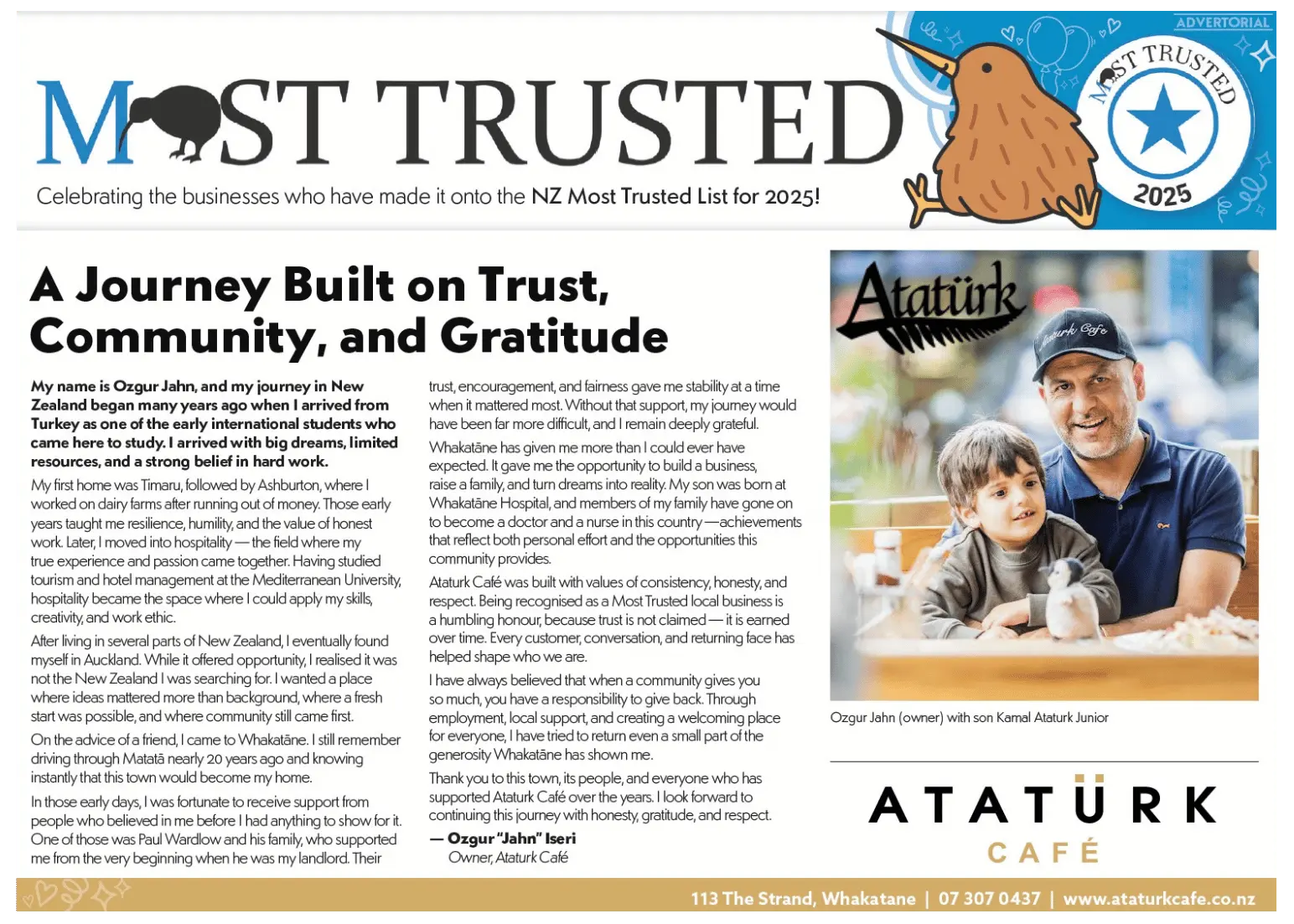Through our business ventures and community involvement, Ataturk Enterprises is proud to contribute to the ongoing development and success of Whakatane. By fostering innovation, supporting local growth, and maintaining a commitment to excellence, we are shaping a brighter future for our region.